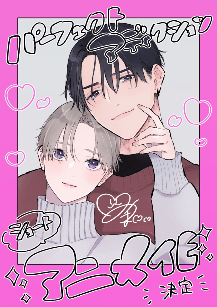 Dia 20, foi anunciado que o mangá BL “Perfect Addiction“, de Miyama Kaoruko, será adaptado para light anime pelo selo de animações BL “BALLOON”. Esta é a segunda adaptação do selo, que atualmente está adaptando “Saioshi no Gikei Mederu Tame, Nagaikishimasu!“.